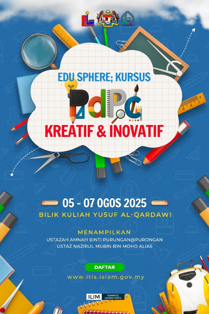 Lahad Datu, 7 Ogos 2025 – Dalam usaha memperkukuh kecekapan dan profesionalisme guru-guru KAFA, Institut Latihan Islam Malaysia (ILIM) Kampus Lahad Datu, JAKIM telah berjaya menganjurkan program EDU SPHERE: Kursus Pengajaran dan Pembelajaran Kreatif & Inovatif (PdPc) pada 5 hingga 7 Mei 2025 yang lalu. Kursus anjuran Program Kecemerlangan Pengurusan Hal Ehwal Islam (PKPHEI) ini menghimpunkan seramai 37 orang guru KAFA dari sekitar daerah Lahad Datu dan Tungku dalam satu platform latihan berimpak tinggi yang menumpukan kepada penguasaan teknik PdPc yang berkesan, inovatif dan berdaya saing.