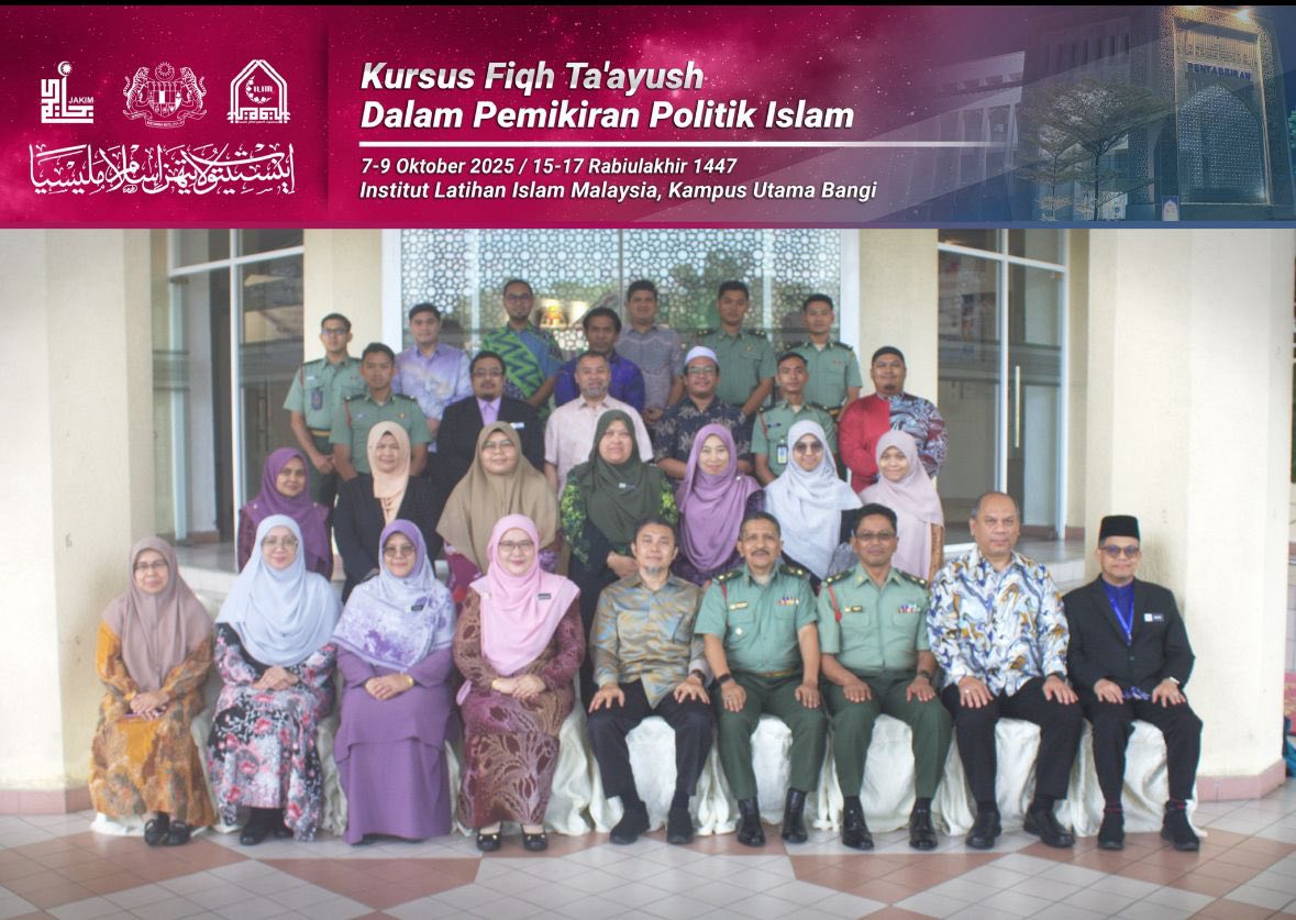 Bangi, 9 Oktober 2025- Institut Latihan Islam Malaysia (ILIM) Kampus Utama Bangi, Jabatan Kemajuan Islam Malaysia (JAKIM) telah menganjurkan Kursus Fiqh Taʿayush dalam Pemikiran Politik Islam pada 7 hingga 9 Oktober 2025 bertempat di Kampus Utama Bangi. Kursus selama tiga hari ini menampilkan barisan penceramah yang pakar dalam bidang siyasah syarʿiyyah dan pemikiran politik Islam untuk membimbing peserta dari kalangan penjawat awam skim perkhidmatan hal ehwal Islam agar lebih memahami fiqh taʿayush serta pemikiran politik Islam, mengaitkan prinsip syariah dengan tadbir urus masyarakat majmuk, menganalisis isu-isu kontemporari seperti ekstremisme, Islamofobia dan populisme politik ke arah membina kehidupan masyarakat yang adil, damai dan inklusif berteraskan Islam.