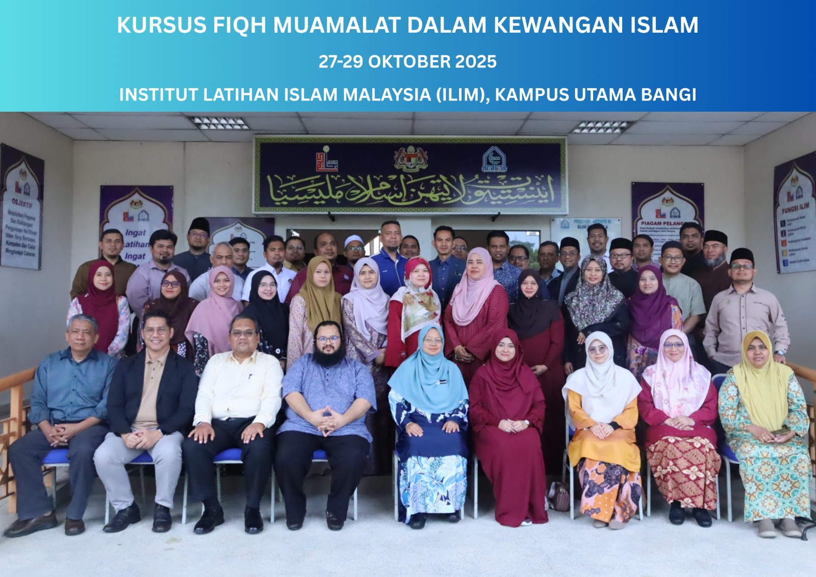 BANGI, 29 Oktober 2025 – Institut Latihan Islam Malaysia (ILIM), Bangi hari ini menganjurkan Kursus Fiqh Muamalat Dalam Kewangan Islam pada 27 hingga 29 Oktober 2025 yang menghimpunkan seramai 40 orang peserta terdiri daripada pegawai Skim Perkhidmatan Hal Ehwal Islam serta penjawat awam pelbagai skim perkhidmatan kerajaan.