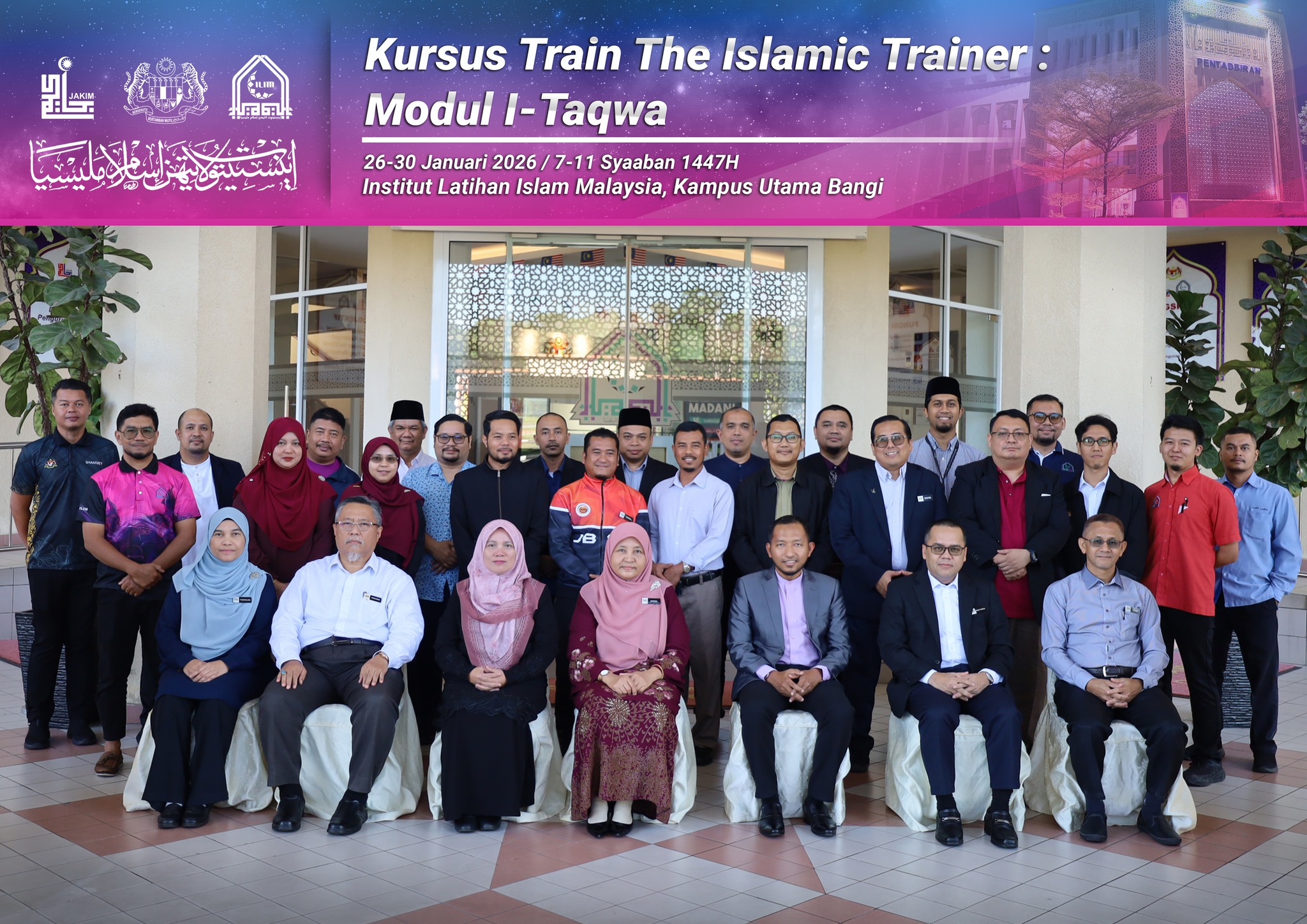 Bangi, 30 Januari 2026 – Institut Latihan Islam Malaysia (ILIM) baru sahaja melabuhkan tirai Kursus Train The Islamic Trainer (I-TAQWA) Siri Ke-2, yang berlangsung dari 26 Januari hingga 30 Januari 2026 di ILIM Kampus Utama Bangi, dengan penyertaan peserta dalam kalangan perunding latihan ILIM dari kampus utama dan cawangan.